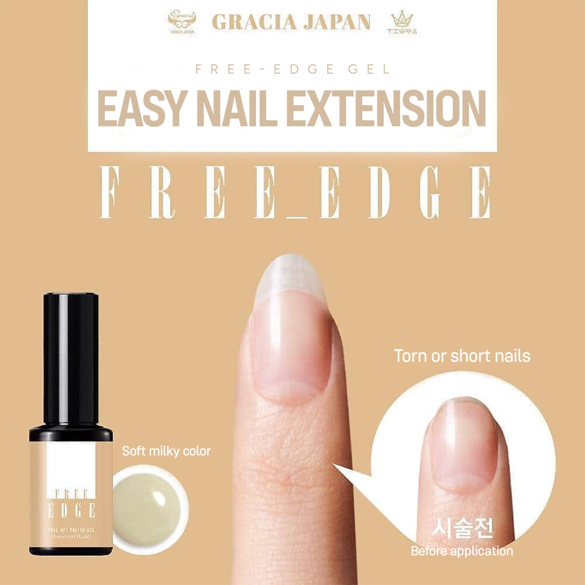 The soft beige tone blends naturally with any nail color, leaving a healthy and durable finish.Create natural, lightweight extensions — beautifully simple with JIN.B Free Edge Gel.