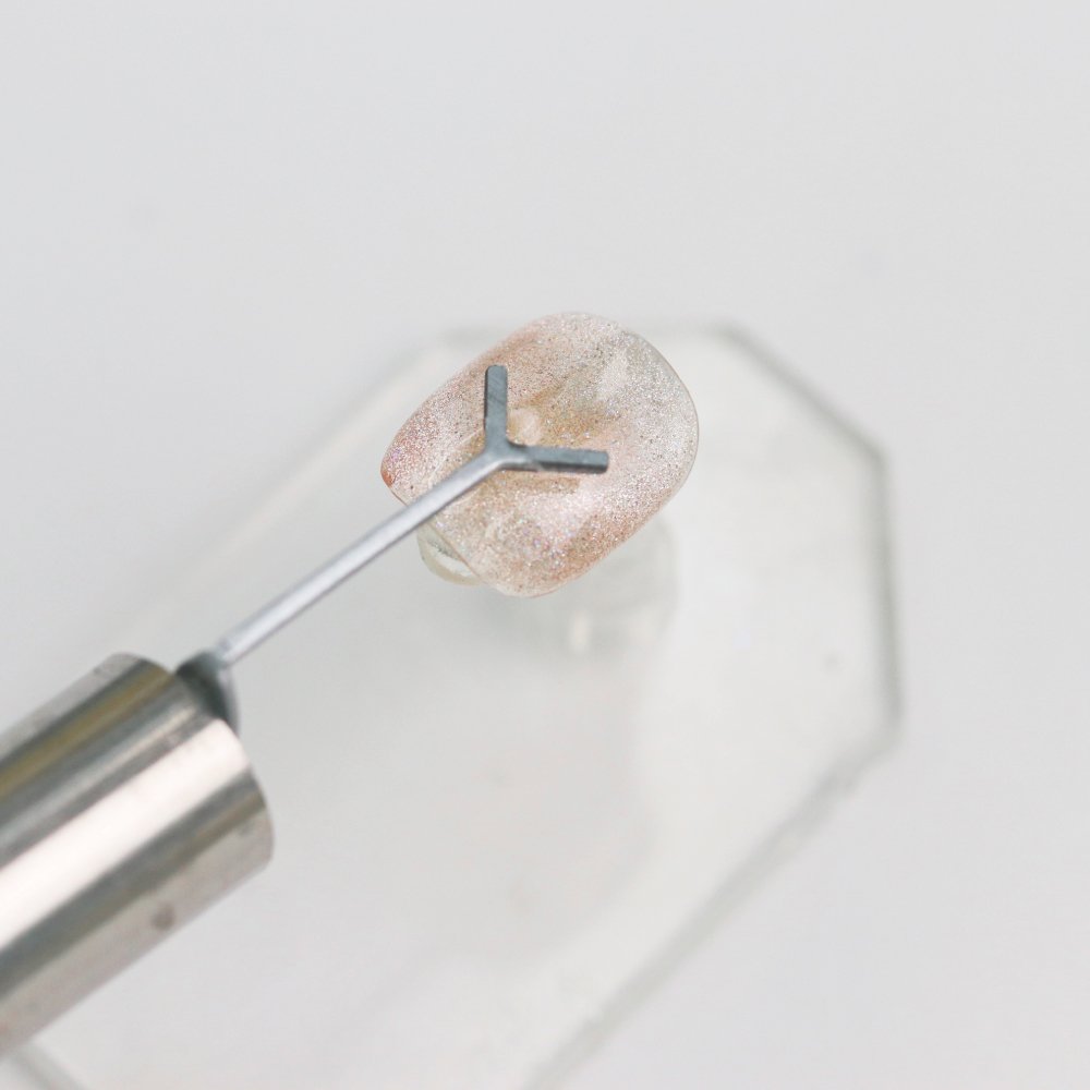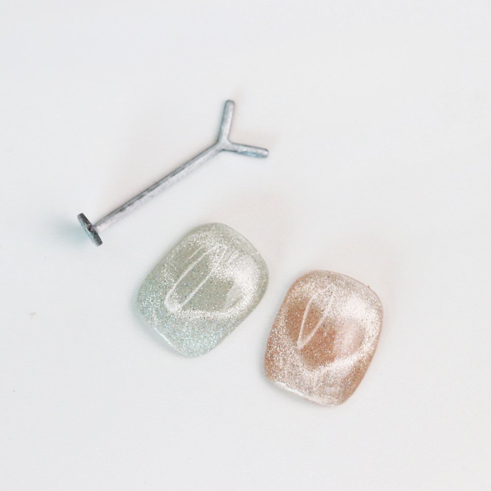 2. After applying the magnetic gel, use the magnet to pull the particles evenly across the nail, then create the heart shape using the magnet with the Heart Stick attached.