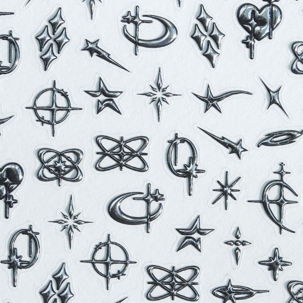 Stellar Code Stickers capture a kitschy Y2K mood blended with a cosmic, space-inspired aesthetic.