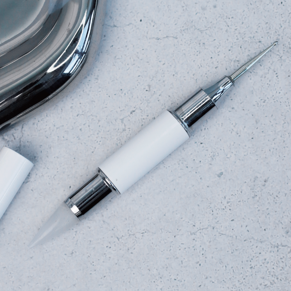 One end allows you to create clean dot patterns with a stick applicator, while the other helps you easily pick up small items like stones and parts that are difficult to handle with tweezers.