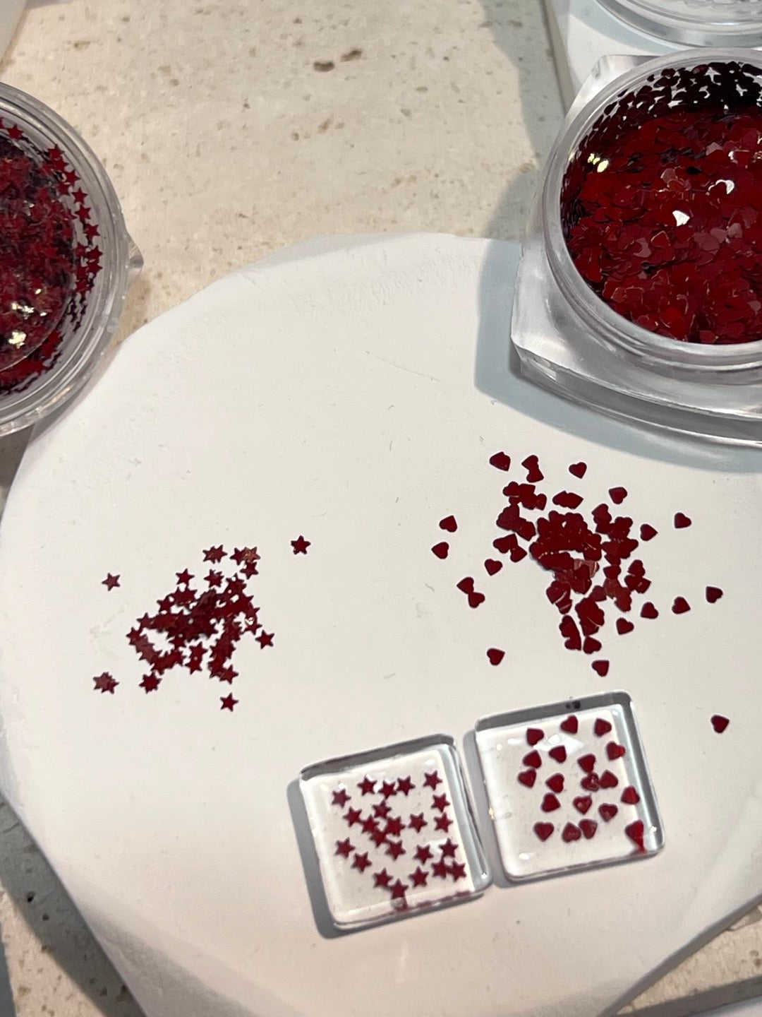 Not your typical glossy red — this deep red hue brings an elegant, festive feel, perfect for holiday-themed nails and beyond.✨ Mini size, maximum impact! Whether for a subtle accent or a bold statement, these mini hearts and stars are the perfect way to add some festive sparkle, especially around Christmas!